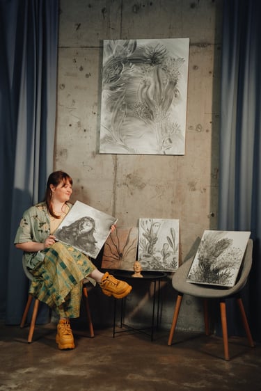 Exhibition "Branching Passions of a restless mind" presents a collection of various works of Ully Galich, embracing the variety of styles and manifestations of a mind which can't stop in one place and can't help but wander.
